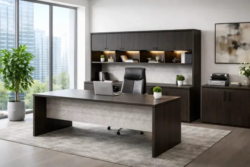 •         Executive desks: Executive desks with a professional design and ample storage space are ideal for financial managers and accounting partners who conduct formal meetings and handle multiple files at once.