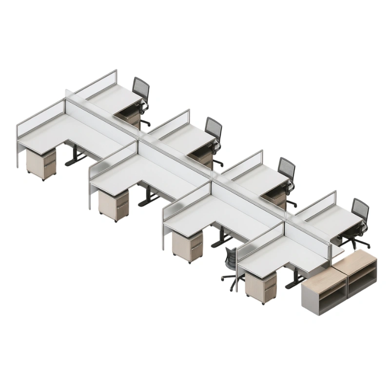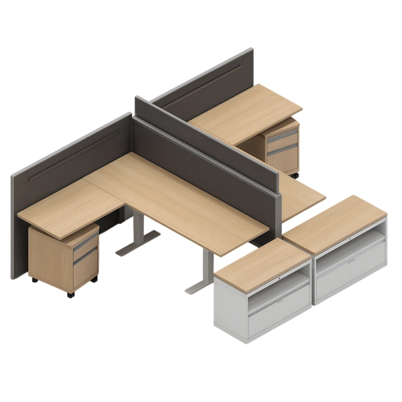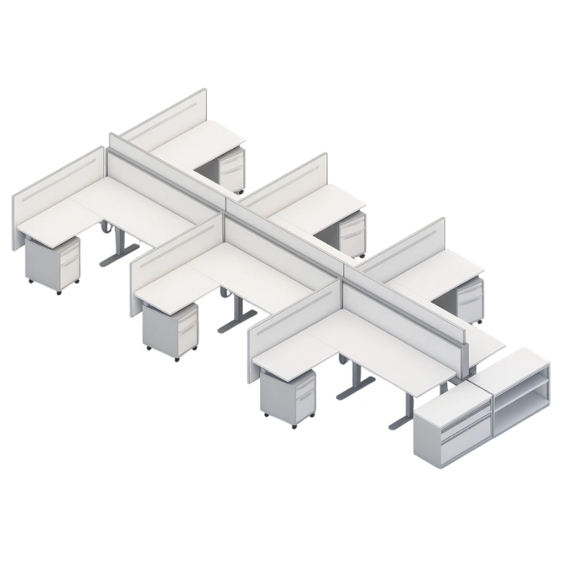 - Get a return on each employee’s office space. This L-shaped work surface gives you extra room to move. Multitask friendly.