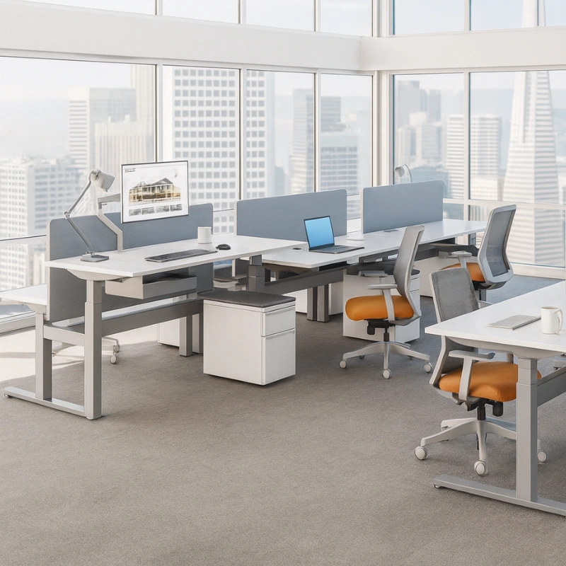 KINEX Adjustable Height Benching, 4-Person Workstation