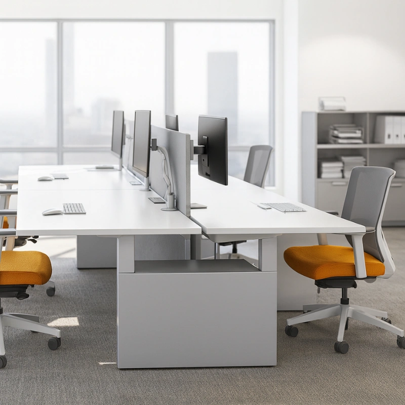 - Height adjustable benching on a per-workstation level, with simple up/down, touch controls. Anti-collision functionality offers safety in the movement.