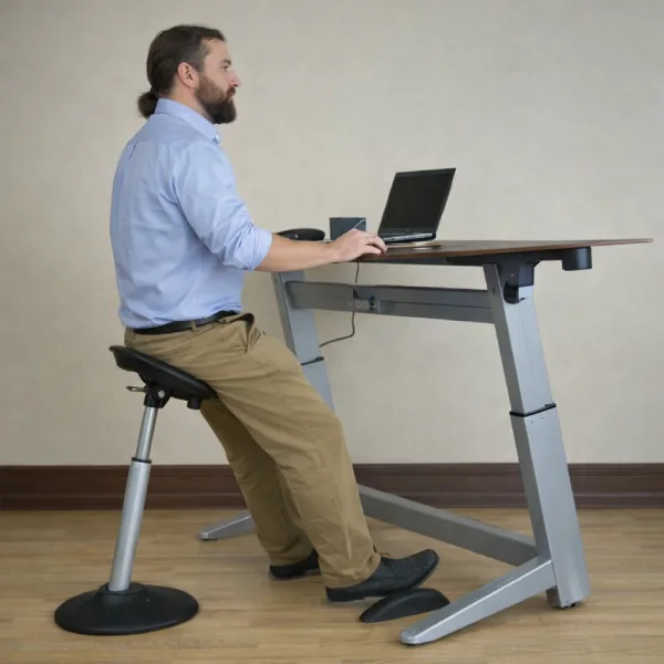 Its flexible design allows users to shift comfortably between sitting and standing positions, making it ideal for height-adjustable desks, collaborative areas, and dynamic office environments.